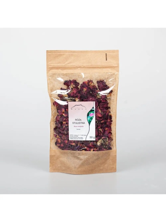 Róża stulistna (Rosa centifolia) – wieloletni krzew o pięknych kwiatach, składających się z ogromnej ilości gęsto ułożonych płatków. Roślina powstała poprzez skrzyżowanie różnych gatunków róż w XVI wieku we Francji i spotykana jest wyłącznie w uprawie. Jej kwiaty nie tylko urzekają swoim wyglądem, ale również zapachem. W płatkach występuje silnie aromatyczny olejek różany oraz szereg antyoksydantów. Są one chętnie wykorzystywane w branży kosmetycznej, perfumeryjnej oraz w zielarstwie. Aktywne związki obecne w kwiatach róży stulistnej wzmacniają organizm, opóźniają procesy starzenia się komórek ciała oraz optymalizują naturalną odpowiedź przeciwzapalną organizmu. Ponadto działają kojąco na stawy i korzystnie wpływają na przebieg menstruacji. Kwiaty można spożywać w postaci naparów lub wykorzystać je do produkcji domowych kosmetyków. Aromat płatków wprowadza w stan relaksu, pomaga się wyciszyć i odpocząć po intensywnym dniu.