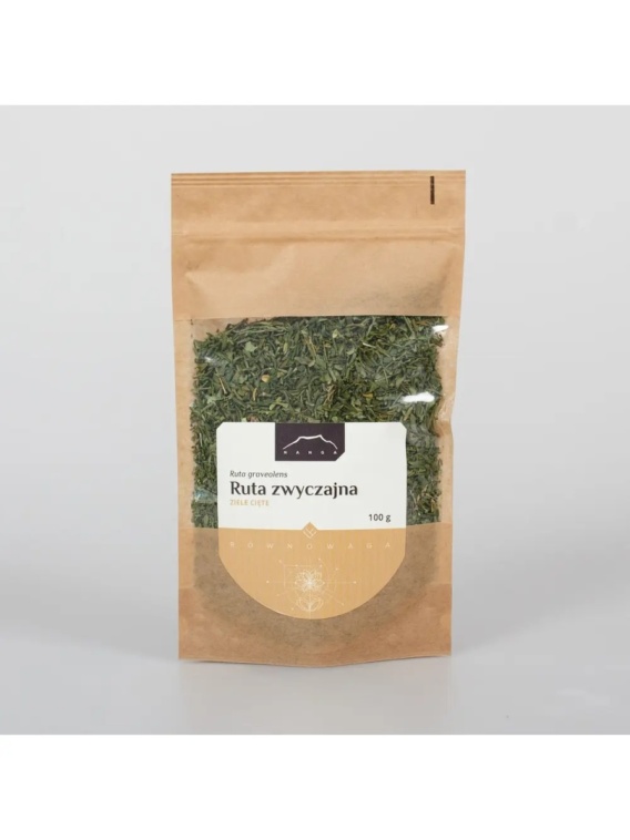 Ruta zwyczajna(Ruta graveolens) – roślina krzewiasta osiągająca do 110 metrów wysokości o drobnych, żółtych kwiatach. Rodzimym obszarem jej występowania jest rejon śródziemnomorski. Surowcem zielarskim jest ziele ruty, zawierające takie składniki aktywne, jak:kumaryny, flawonoidy, alkaloidy, olejek eteryczny, lignany, substancje gorzkie i garbniki. Roślina ta znana była już w starożytności. Hipokrates cenił jej właściwości rozkurczowe i moczopędne. Ruta miała też istotne znaczenie w ludowych obrzędach. Do dziś wykorzystywana jest w medycynie tradycyjnej. Ruta zwyczajnawpływa korzystnie na budowę naczyń krwionośnych. Zalecana jestw przypadku stłuczeń, siniaków lub opuchnięć. Sprawdza się w pielęgnacjicery naczyniowej i trądzikowej. Można ją zastosować w postaci okładów lub jako dodatek do relaksującej kąpieli.Spożywana w formie naparów wspiera prawidłowe trawienie. Dla uzyskania pełnej gamy składników najlepiej przygotować wyciągi na bazie oleju bądź alkoholu.